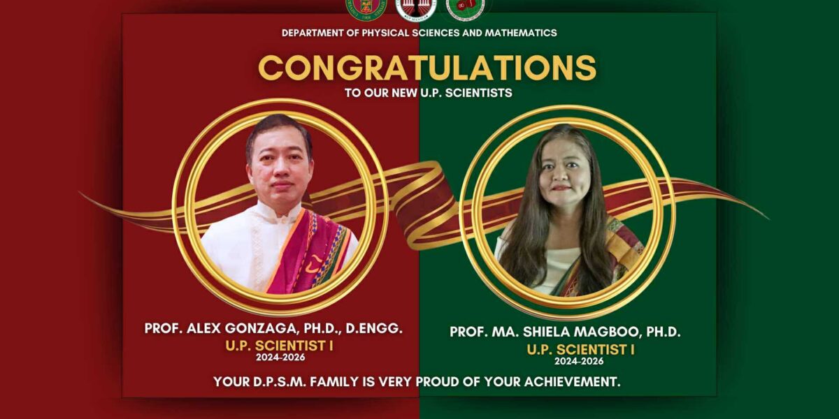 The Department of Physical Sciences and Mathematics (DPSM) of the College of Arts and Sciences is now beaming with pride as two of its faculty members were awarded the title “UP Scientist” for the 2024-2026 cycle under the UP Scientific Productivity System (SPS).