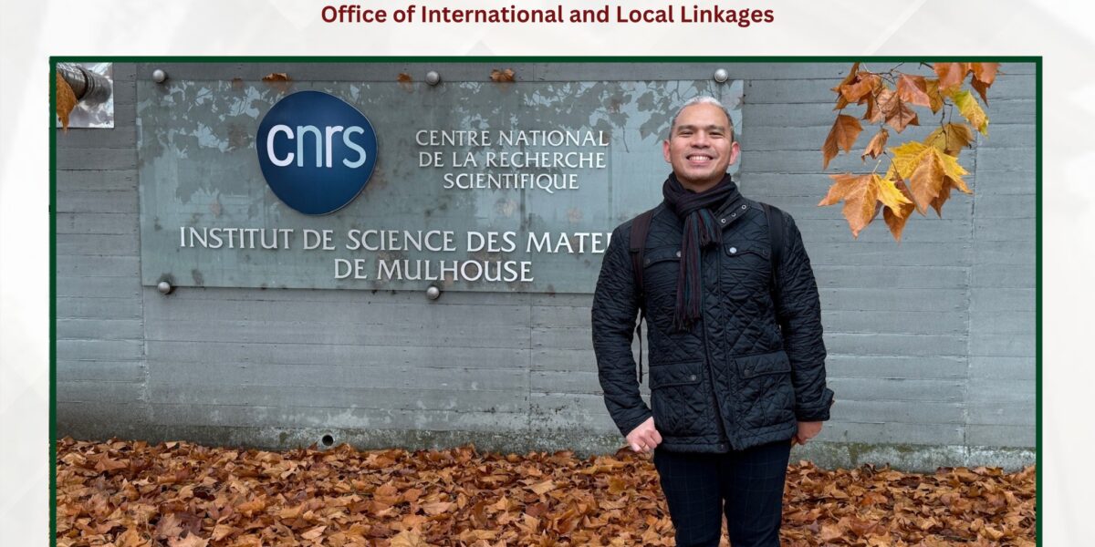 Dr. Julius Andrew P. Nunez of the ChemBiochem Unit of the Department of Physical Sciences and Mathematics, received the France Excellence Séjours Scientifiques de Haut Niveau (SSHN) fellowship grant to perform his research at the Institut de Sciences des Matériaux de Mulhouse (IS2M) Université de Haute Alsace (UHA), Mulhouse, France. Dr. Nunez was in France as a visiting professor/researcher on November 9-29, 2025. During his three-week stay at IS2M-UHA, he performed different materials characterization analyses and cytotoxicity tests for his research team’s alginate-chitosan microsphere drug delivery system, with his laboratory host, Dr. Arnaud Ponche. Aside from doing experiments, he also gave a lecture to IS2M students and post-doctoral researchers on the different research projects being conducted by the Laboratory of Materials (LABMAT)-UP Manila.